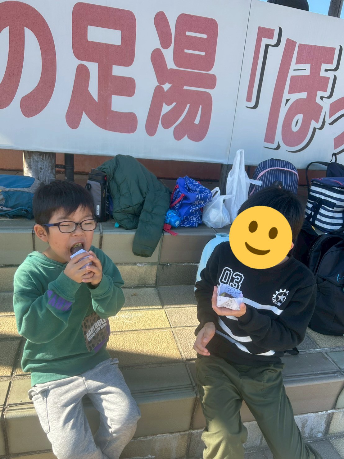 おやつには温泉卵と蒸し芋を近くの窯で蒸しました!