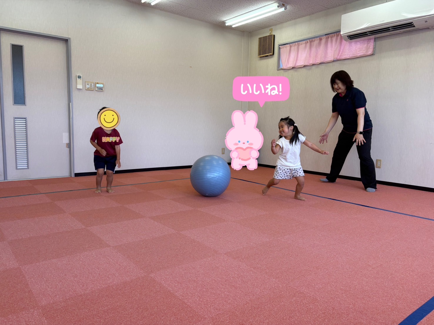 普段の流れ通りの朝の準備~始まり、サーキット遊びに転がしドッジボール、