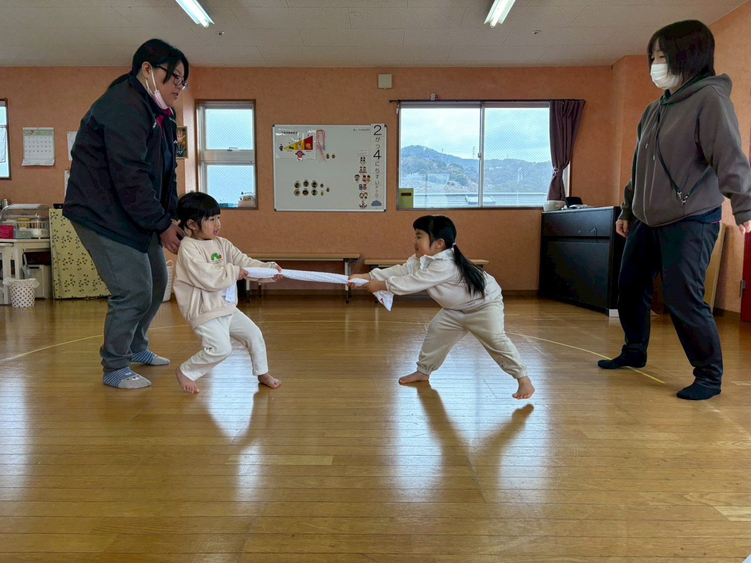 タオルが一枚あるとできる簡単な遊びなので、お家でも遊んでみてください♪
