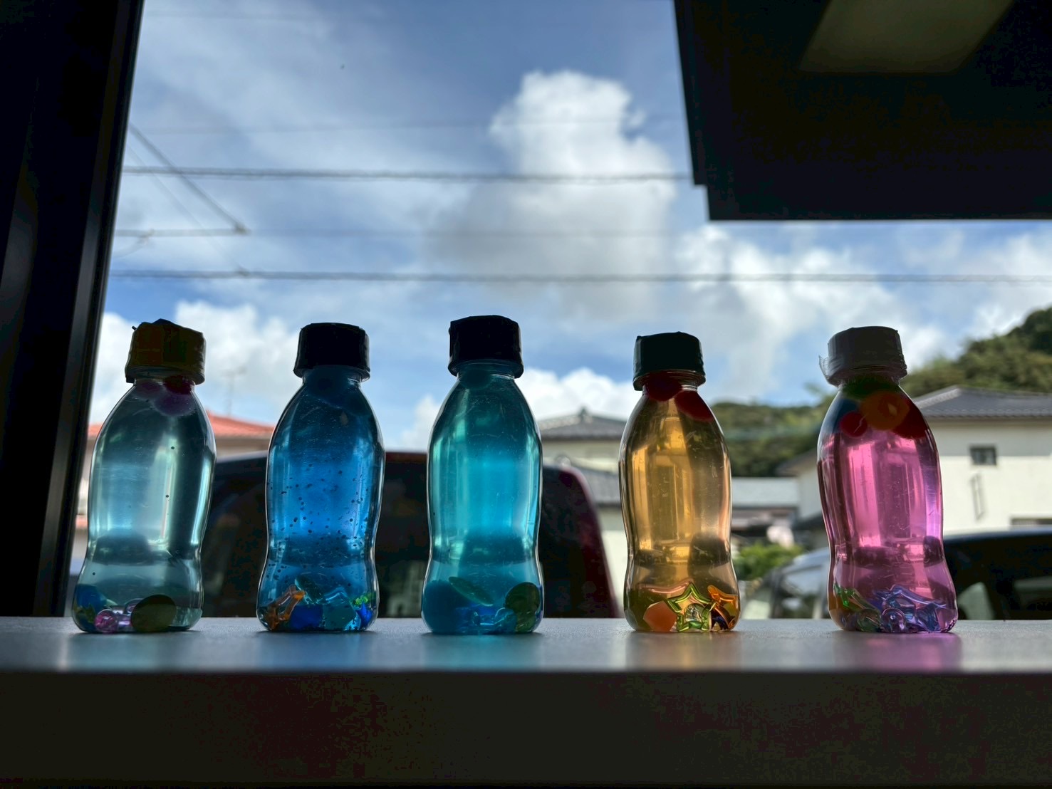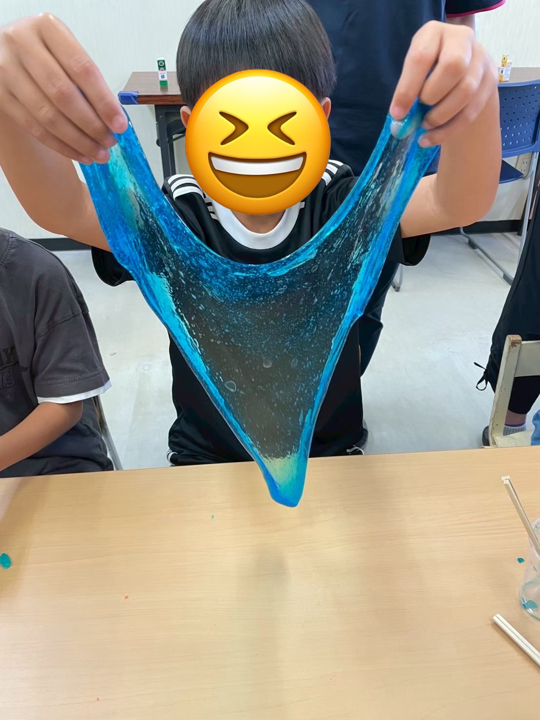 今年の夏は、洗濯のりとホウ砂を混ぜたスライムと、洗濯のりとホウ砂にプラスして、ボンドとハンドソープを混ぜた2種類のスライムを作りました。どちらも触り心地は気持ちよかったですが、ボンド・ハンドソープ入りの方が、もっちもちな感触でした![]()