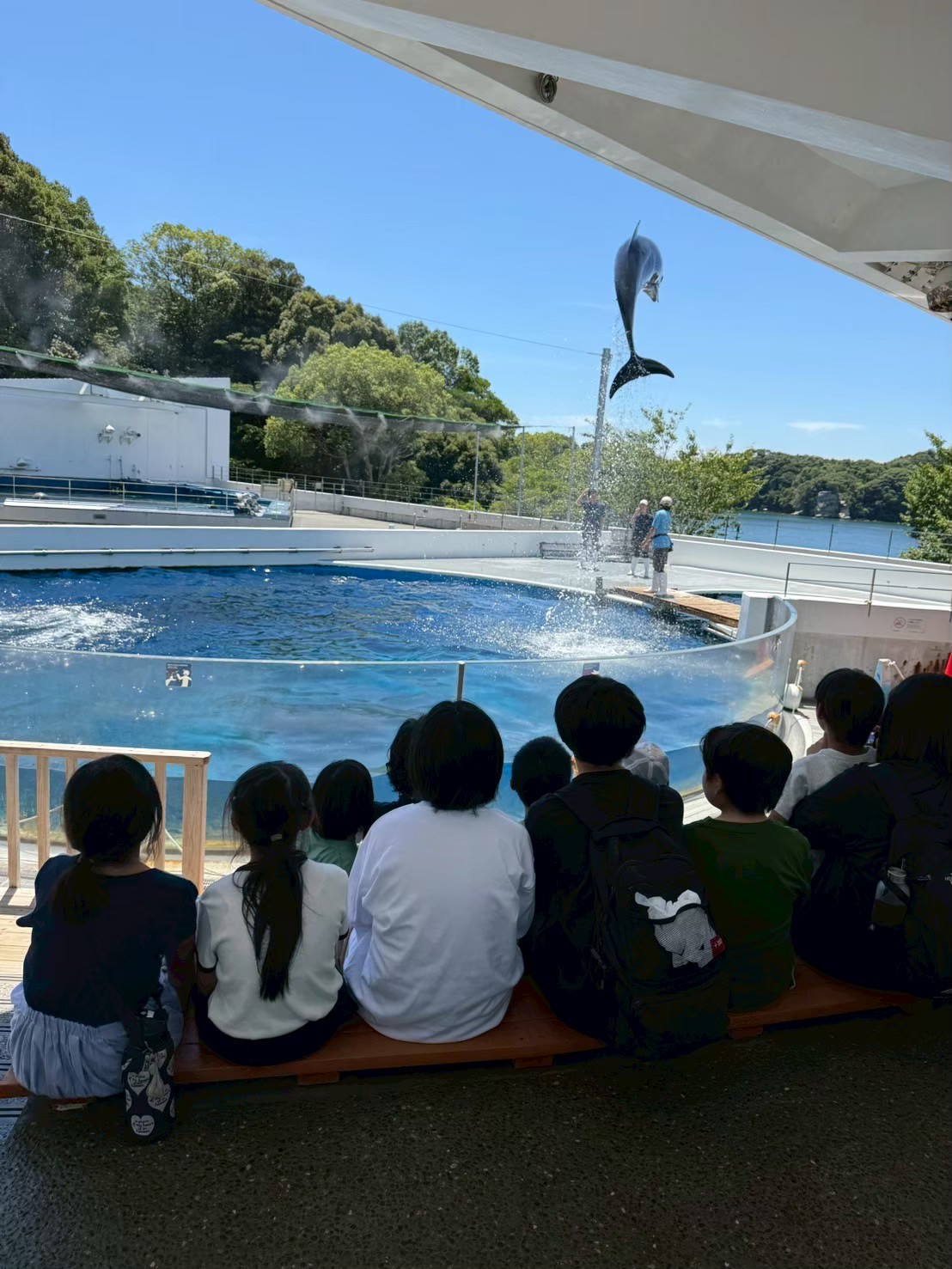 イルカショーはイルカの体調不良で中止の予定でしたが、なんと運よくショーの練習を見ることが出来ました!!😍