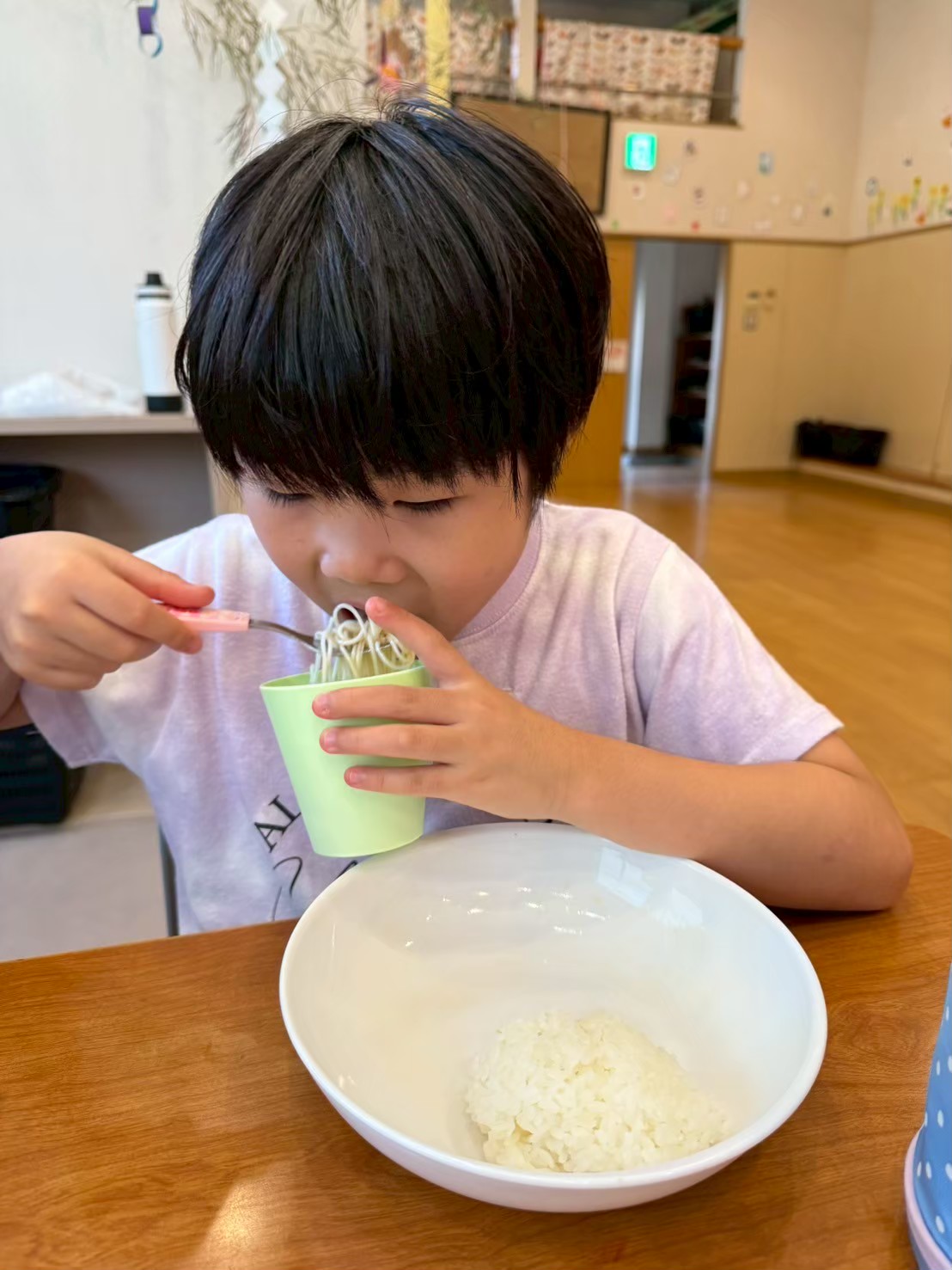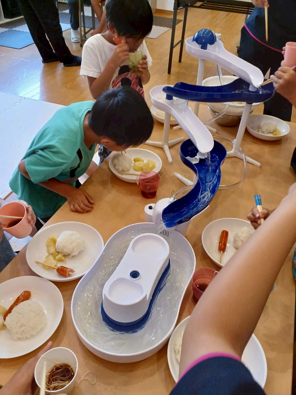 初めてそうめんが流れるところを見る子どもたちは「流れてきた~!!」「早く取らなきゃ!!」と大はしゃぎでした😍😍