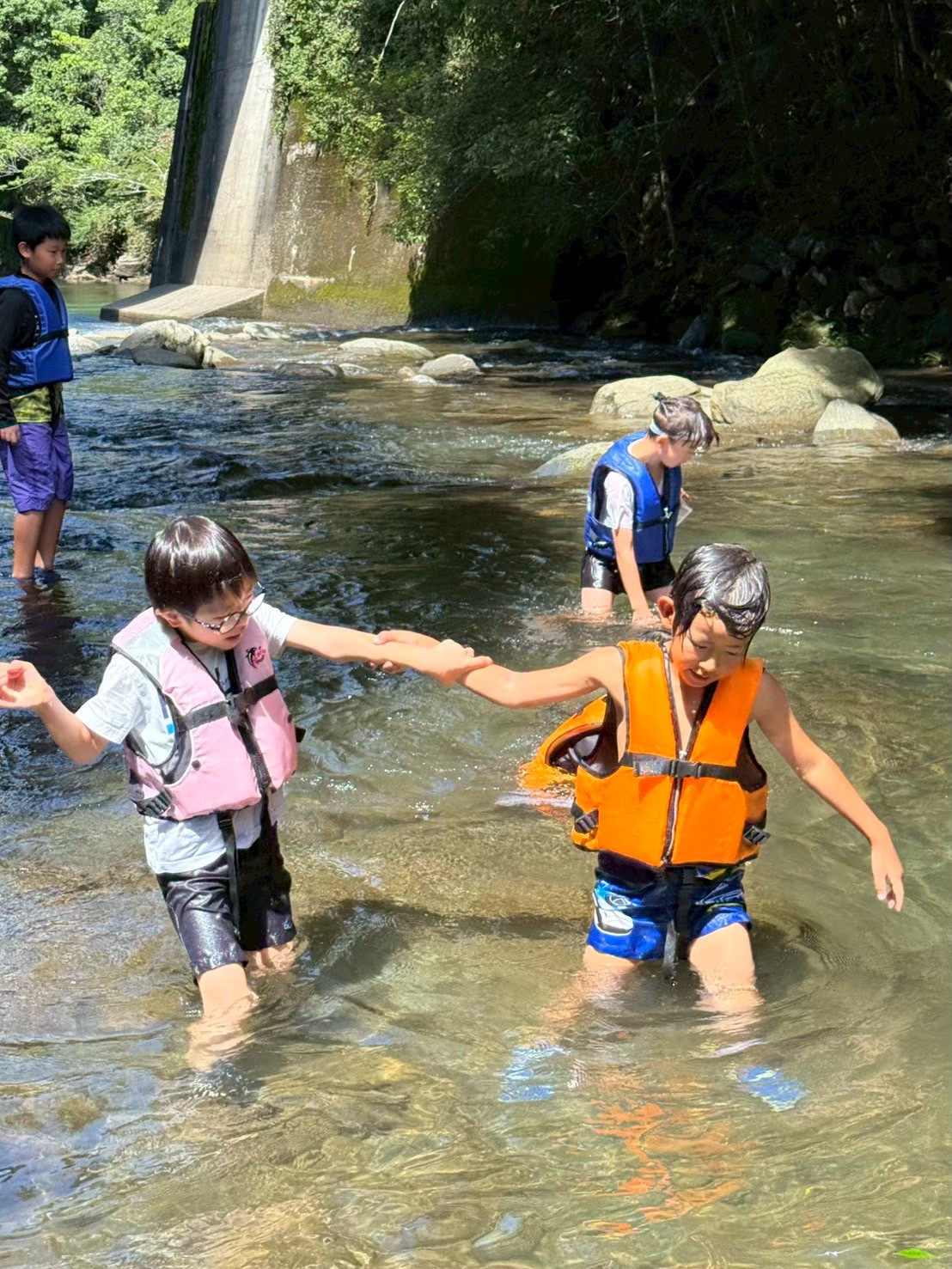 お昼ご飯をみんなで食べた後に、生き物を見つけたり流されたり🙈💓
