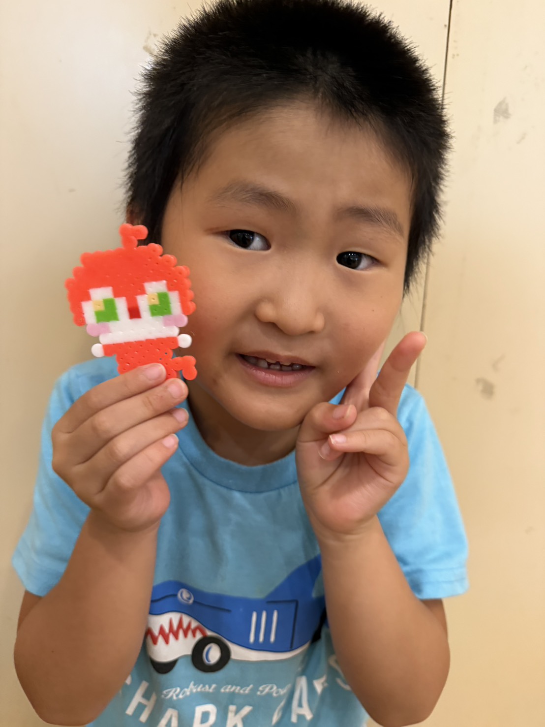 みんなで器用にビーズを並べて、好きなキャラクターや動物などを作りました❣