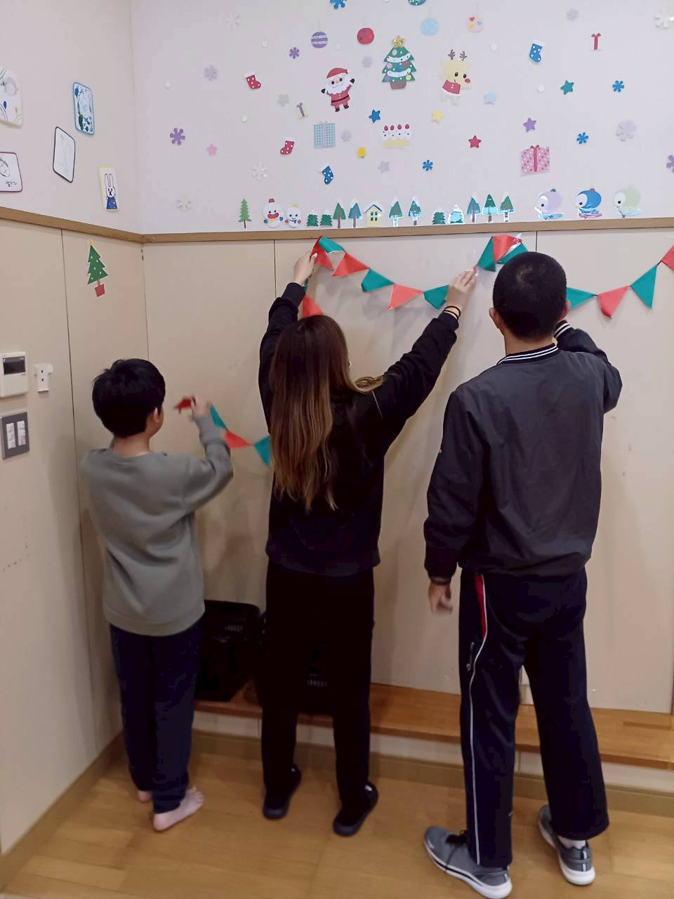 みんなで飾り付けをした後、ゲームや集団遊びを行い、サンタさんからプレゼントをもらいました🎅🎁❤️