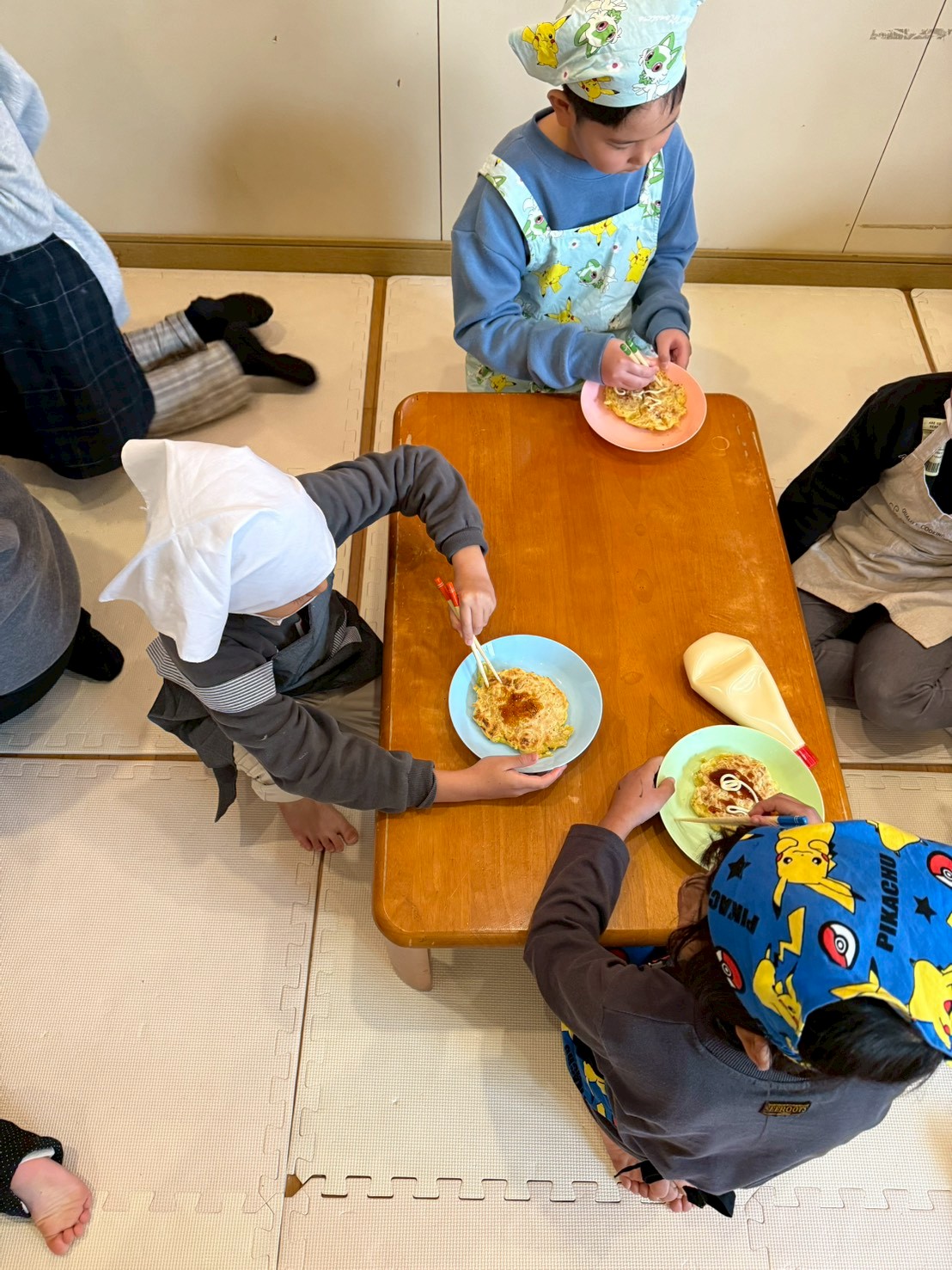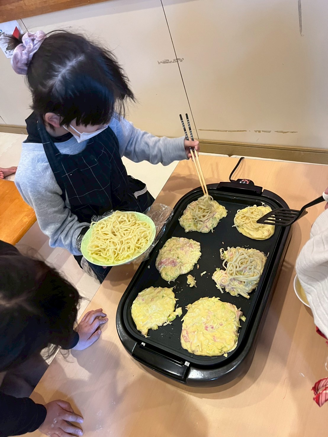 広島風っぽく焼きそばを入れたりして、みんな手際よく協力して作り、とってもおいしいお好み焼きが出来上がりました👏💯